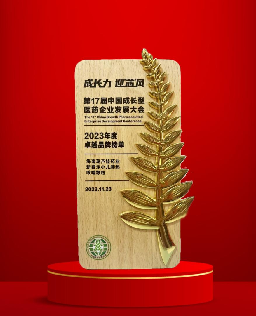 11月22日至25日,由中国医药物资协会和厦门市人民政府主办的第17届中国成长型医药企业发展大会在厦门拉开帷幕。会上,BG视讯药业集团党委书记、董事长刘景萍获得“金叶奖·2023年度医药行业风云人物奖”,集团旗下产品新费乐®小儿肺热咳喘颗粒荣膺“2023年度卓越品牌奖”。